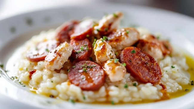 Comment préparer un risotto crémeux et savoureux au poulet et chorizo ?